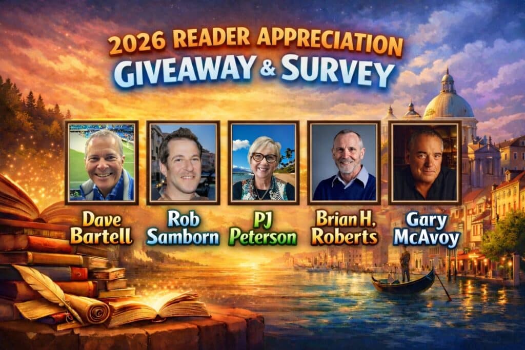 Other authors joining me in this campaign are Dave Bartell (Archaeology Thrillers), Rob Samborn (Dual-Timeline Thrillers), PJ Peterson (Cozy Mysteries), and Brian H. Roberts (Science Fiction Thrillers). It’s a pleasure introducing readers to notable authors who might be new to them, and if you have yet to cross paths with their work, you’re in for a treat. At minimum, I would encourage you to sign up for their personal newsletters. Click on each of their names above to visit their websites and discover their work firsthand.
